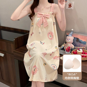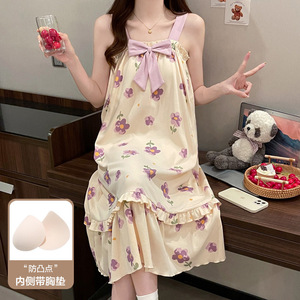 女性用夏パジャマ、胸パッド付きサスペンダースカート、ノースリーブ、ブラジャーなし、ホーム服、学生女の子、甘くてかわいい、薄い
