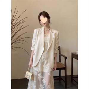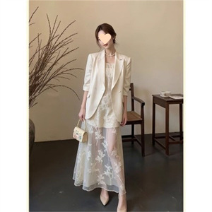 フランスの高級社交界の女性の香りのスーツジャケットサスペンダーホワイトドレススーツ女性のための春の成熟したツーピーススーツ