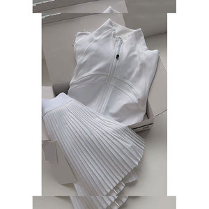 ヨーロッパ商品 2025 Xiaoxiangfeng 通勤カジュアルスポーツ今年人気の白いジッパートップスーツプリーツスカート春夏