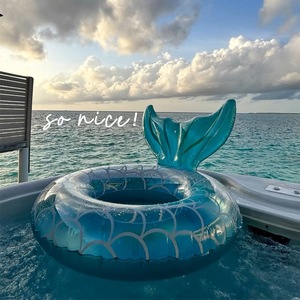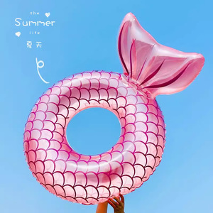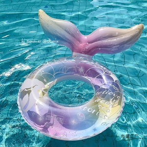 ins 水泳リング親子マーメイド子供脇の下リングインターネット有名人大人透明厚みのあるスパンコール浮力救命浮輪