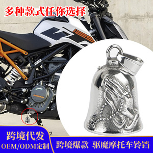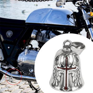 オートバイ装飾ベル祈りハンドベル翼クロスパターン電気メッキベルペンダントパンクオートバイスタイル