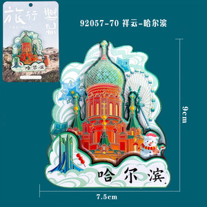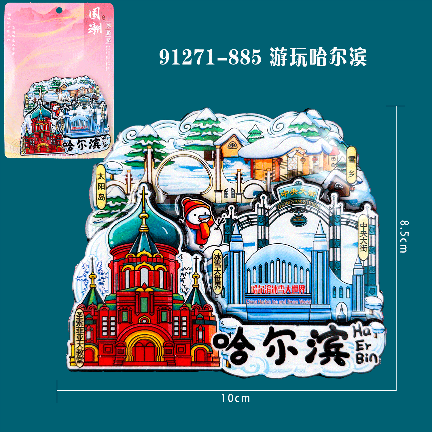 哈尔滨木质冰箱贴黑龙江冰雪世界文创国潮旅游城市纪念品冰箱贴