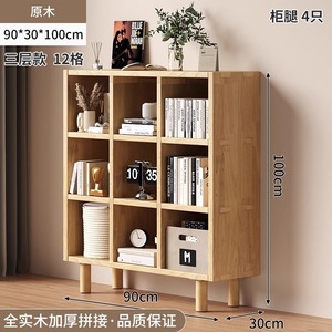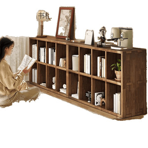 無垢材の低い本棚、自宅のリビングルーム、寝室、子供用本棚、床置き収納ラック、壁面収納、格子キャビネット、収納キャビネット