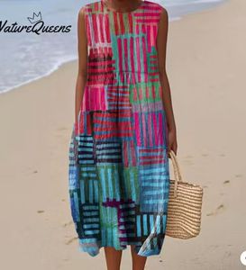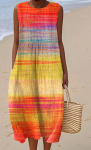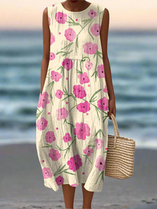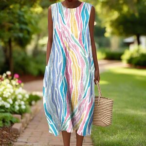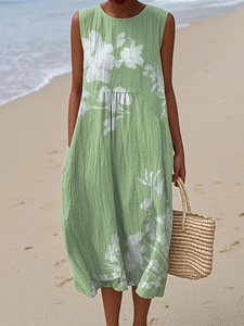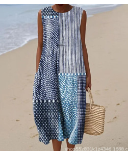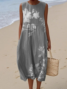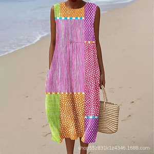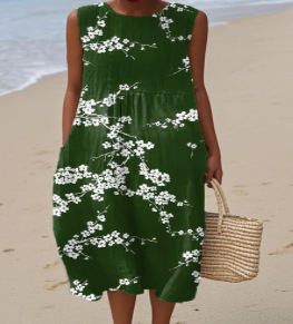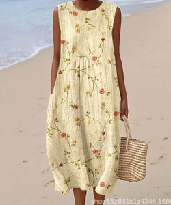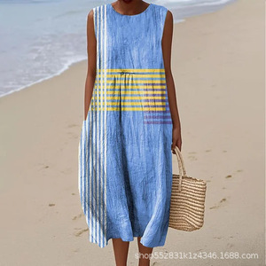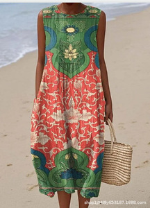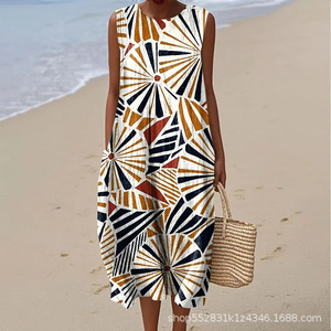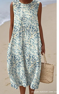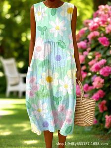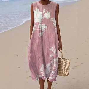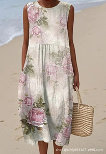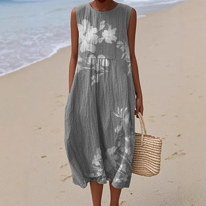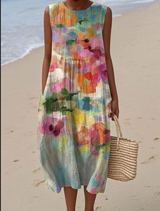 2025 新しいクロスボーダー花柄要素シェーディング 3D デジタル印刷ルーズカジュアル女性のノースリーブドレス