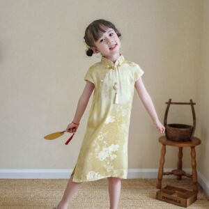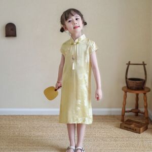 2025 新しい子供のチャイナドレス夏中国風の女の子ミドル丈スカート新中国風の漢服ドレス
