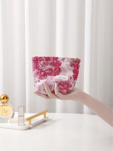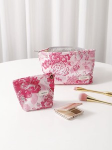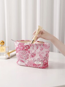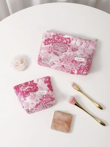新しいスタイルのピンクのジャカード高価値生地の化粧品バッグ、ジッパー開閉付き、スキンケア製品収納バッグ、クラッチバッグ