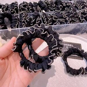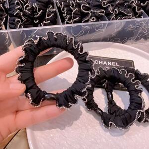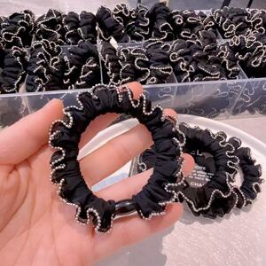 韓国版の軽い高級ビーズチェーン、快適なアイスシルクマスク、ヘアゴム、重厚な木耳ヘアロープ、ネットセレブファッションヘアロープヘアアクセサリー