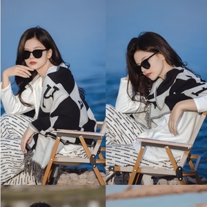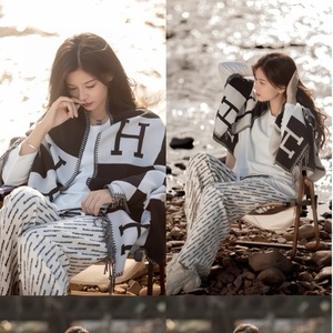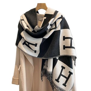 秋冬季H字母双面仿羊绒围巾女士高级感欧美加厚流苏披肩保暖围脖
