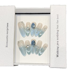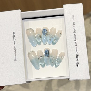 高級リゾートスタイルキャットアイハイエンドフラッシュダイヤモンドミッドレングス手作りウェアラブルネイル手作りマニキュアフェイクネイルパッチ