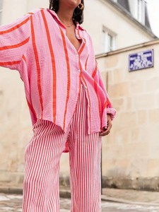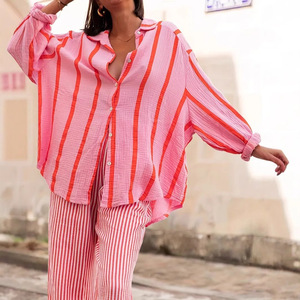 2025 ヨーロッパとアメリカのアマゾン独立ステーションクロスボーダー婦人服夏の新しいパーティーホリデーレジャーストライプルーズシャツ