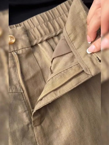 今年人気の女性用レイジースタイルハイウエストワイドレッグパンツ夏ブラウンテンセルリネンゆったり快適カジュアルパンツ