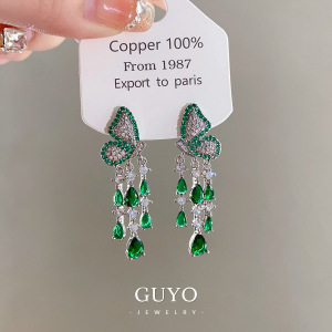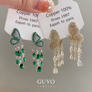 银针锆石蝴蝶翅膀水滴流苏耳环复古晚宴气质耳钉轻奢高级感耳饰女
