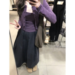 韩系一整套穿搭复古辣妹修身吊带上衣短款针织开衫外套长款半身裙
