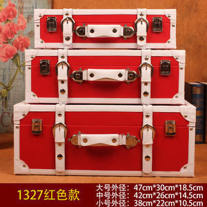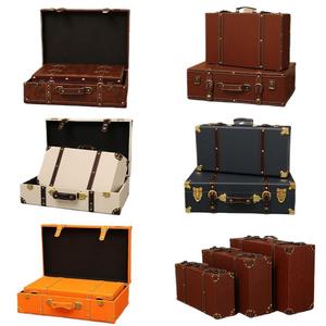 ヨーロッパのレトロなスーツケース収納木箱収納ボックス昔ながらのレザースーツケース旅行写真小道具雑貨収納ボックス