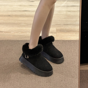 ヨーロッパとアメリカの女性用厚底スノーブーツ 2025 冬大きいサイズの金属バックルとスエードの毛口の小さな東北綿の靴