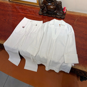 ハイバージョン LP ソリッドカラー ロゴ刺繍ブレスト ラペル クラシック 長袖 カジュアル ルーズ レディース シャツ パンツ スーツ