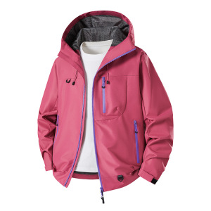 メーカー卸売 2025 人気のカップル ジャケット、男性と女性のための同じスタイルのアウトドア フード付き防風防水登山服