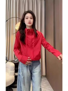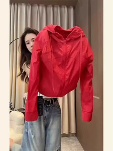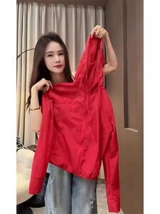 ヨーロッパの人気の高級で超見栄えの良いトップスドーパミンレッド軽量フード付き日焼け止めジャケット女性夏用