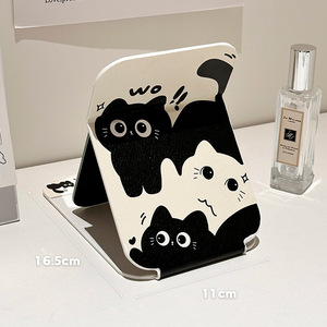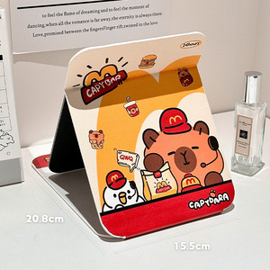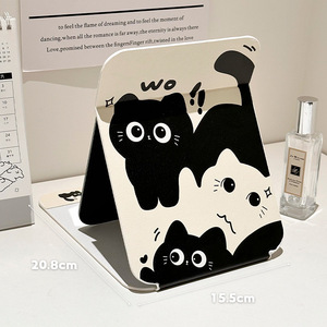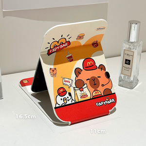 かわいい漫画 pu レザー折りたたみ化粧鏡デスクトップスタンド化粧鏡女の子ポータブル化粧鏡