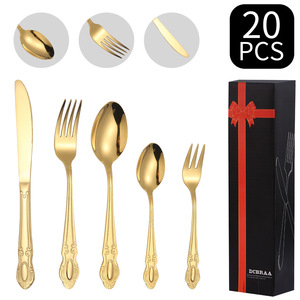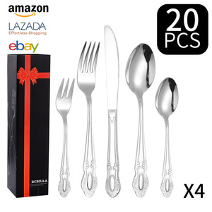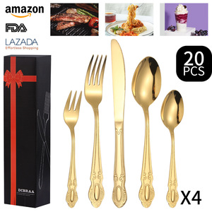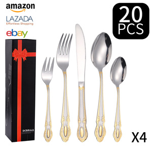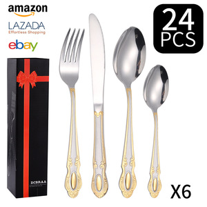 Amazon クロスボーダー ジェムストーン ステンレス カトラリー フォーク スプーン 24点セット 食器セット ホテル 洋食 カトラリー フォーク スプーン