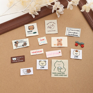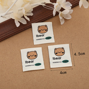 现货批发卡通风可爱小熊樱桃布贴标签水洗标服装辅料手工diy布贴