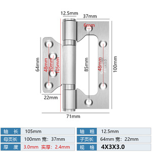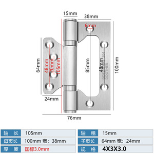 ステンレス鋼ダブルヒンジベアリング 4inch 5inch ルームドア木製ドアフリーアップダウンヒンジヒンジルーズリーフ折りたたみヒンジサプライチェーン