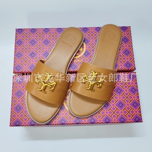 【在庫あり】女性用スリッパ、夏の新しいスタイル、旅行や休暇、ヨーロッパとアメリカンスタイルの平底スリッパ、TBメタルバックル