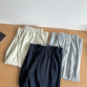 リヨセルテンセルリネンスリムナローワイドレッグパンツレディース夏薄手ドレープカジュアルパンツ