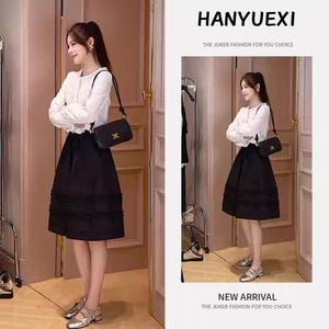 春季时髦时尚洋气穿搭女新款轻熟宽松花边衬衫a字半身裙两件套装