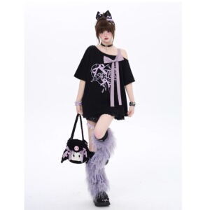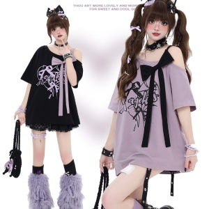 【クールシルクコットン糸40番手 1×1】スラントネックオフショルダーサスペンダー半袖Tシャツ レディース 2025年夏新作 ピュア