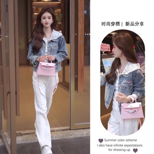 入春套装女2025年新款百搭打底衫超好看牛仔外套显瘦长裤三件套装