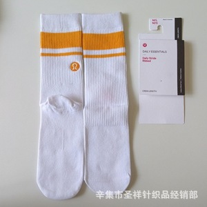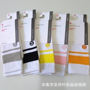 在庫ありの新しいルル刺繍タオルソックス男性と女性のミッドチューブヨガランニングスポーツソックスカラーストライプトレンディソックス