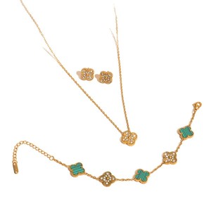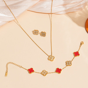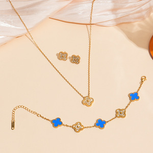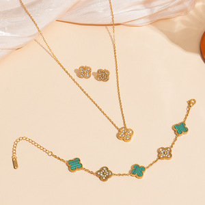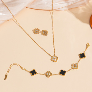 チタン鋼色褪せないダイヤモンド両面四つ葉の花セットネックレスレディースファッショナブルな気質ライト高級鎖骨チェーンブレスレットジュエリー