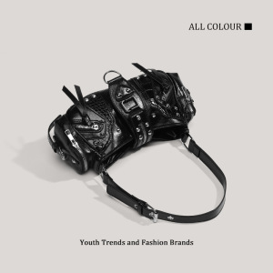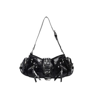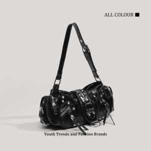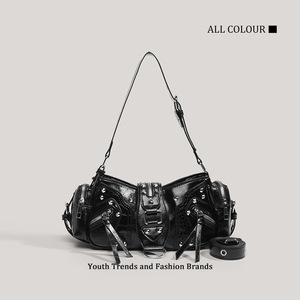 ヨーロッパとアメリカのレトロなオートバイスタイルのハンドバッグ、ファッショナブルなニッチリベットショルダーバッグ、マルチポケットデザイン、オイルワックスレザークロスボディバッグ