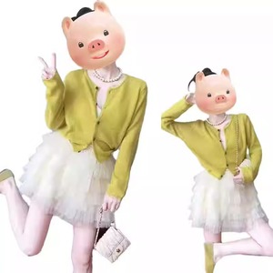 春季时髦时尚减龄穿搭女新款小个子短款开衫蛋糕蓬蓬裙两件套装