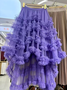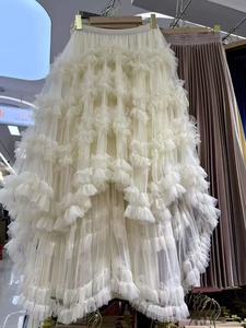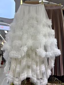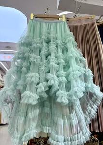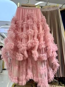 フレンチロマンティックヘビーデューティーフリルメッシュパフスカート前が短く後ろが長い不規則なケーキスカートフェアリーガーゼ