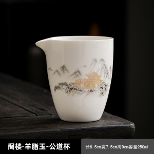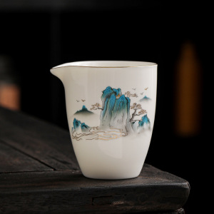 セラミックフェアカップシングルティーカップティーディスペンサー家庭用茶海中国カンフー茶セットアクセサリー影青描画ゴールドフェアカップ