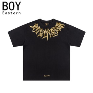 BOY トレンドブランド イーグルウィングス ロゴ25 春夏新作 ブラック ファッション ラウンドネック ユニセックス Tシャツ