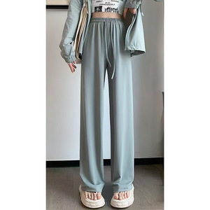 女性用のロングアイスシルク夏用の軽くて通気性のある速乾性カジュアルパンツストレートパンツハイウエスト薄いワイドレッグパンツ日焼け止めパンツ