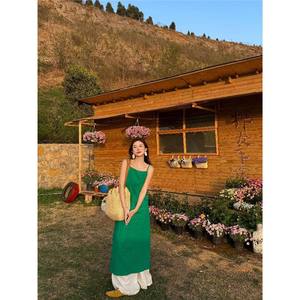 正しいバージョン!フレンチレトロコットンとリネンのサスペンダードレスレディース夏ルーズ痩身カジュアル多用途ロングスカートトレンディ