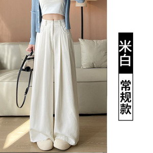 【原版包边】 白色奶芙西装山本裤女夏季薄款高腰宽松直筒阔腿裤