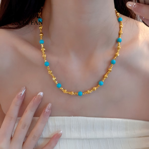 ファッショナブルな5Gクラフトハードゴールドクラフトフレンチライト高級ブラッシュシャイニーキャットアイビューティーパインネックレス新しい中国風の鎖骨