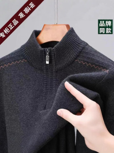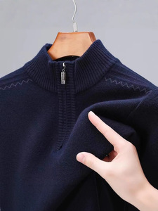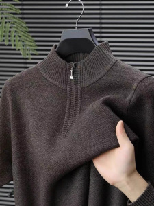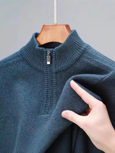 冬季新款羊毛衫男装半高领拉链毛衣加厚保暖中年打底针织衫