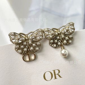 女性用のDijiaレターCDバタフライ中空パールイヤリング、レトロなライトラグジュアリースタイル、女性用の多用途イヤリング、卸売およびドロップシッピングのリアルショット