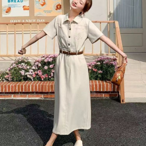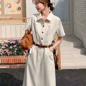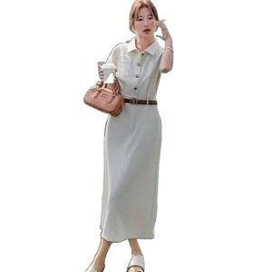シャツワンピース、教師面接室、ウエストシェイプ、襟付き、夏のシンプルでエレガントなスカート