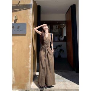 軽くて大人なデザインの胸結びノースリーブドレス女性用2025年夏新作フレンチスタイルスリムロングスカート