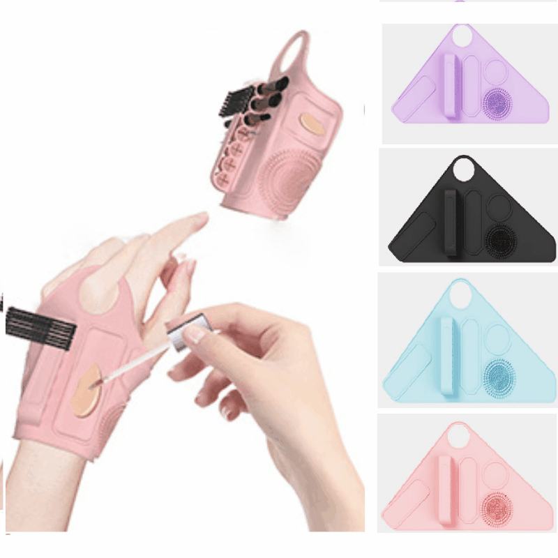 国境を越えた人気のシリコンメイクアップ補助ハンドストラップ、多機能メイクブラシ、クリーニングエリア付き美容ツールリストストラップ