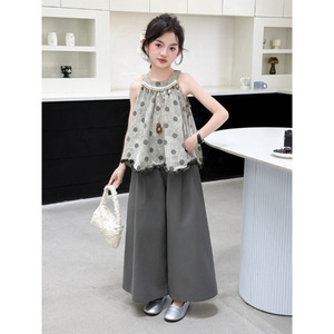 女の子サマースーツ2025新作女の子韓国風子供夏服高級ベスト2点セット