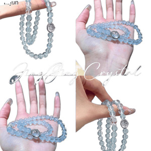 天然アクアマリンブレスレット、氷透明、氷河ブルー、二重丸クリスタルブレスレット、多用途、美白、女性ギフト