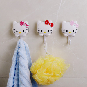 漫画クリエイティブキティフック吸盤バスルームシームレスシングルフックキッチンバスルーム衣類ノンマーキングフックかわいい